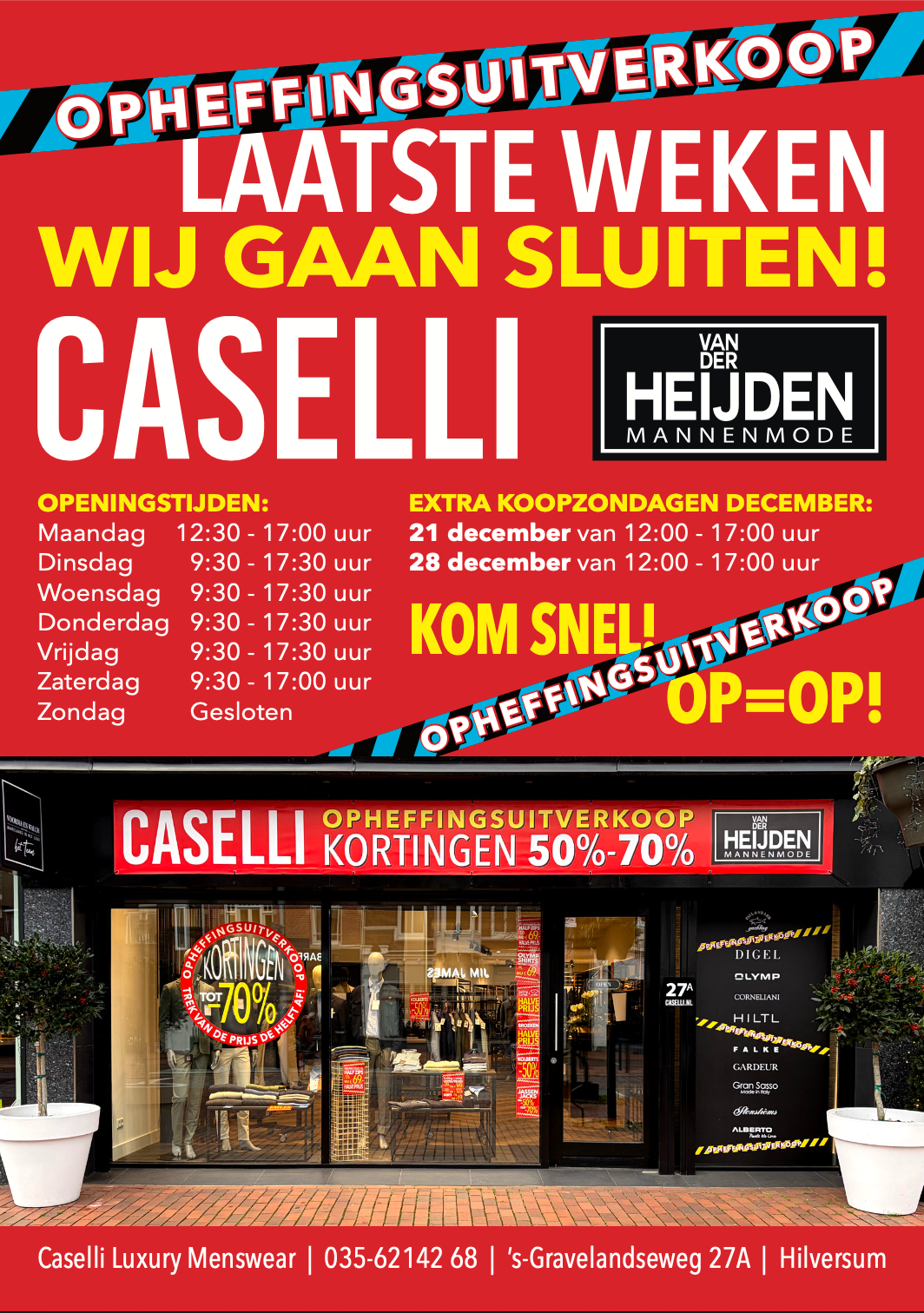 Stijlvolle heren, de ultieme shopping ervaring wacht op je! 🕺 De Caselli Menswear Finale Sale is NU live, en geloof ons, dit wil je niet missen. 🛍️
